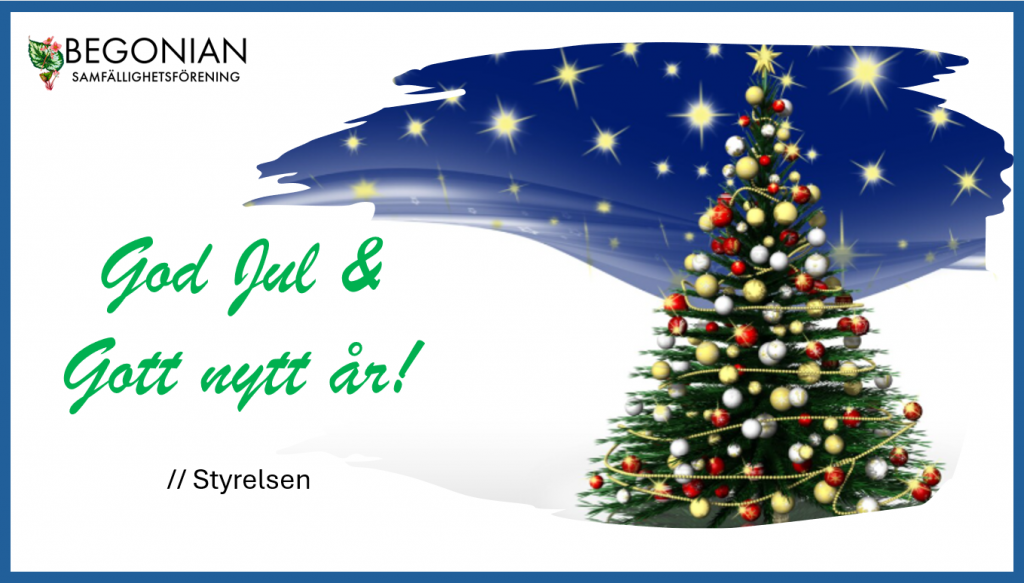 Vi i Styrelsen tar tillfället i akt att önska alla i föreningen en riktigt God Jul och önskar er även ett Gott nytt år! Förhoppningsvis får ni några dagars ledigt under julhelgen där ni kan koppla av och kanske umgås med familj och vänner. Eller varför inte läsa en bra bok eller gå på härliga långpromenader?